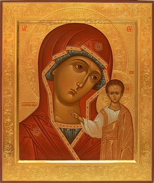 Помолите се за нас Србе пред чудотворном Казањском иконом Мајке Божје.