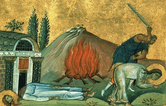 Ее верная служанка Еротиида, увидев, как поступили с госпожой, бросилась к губернатору и ударила его по лицу. Она была немедленно схвачена и подвергнута бичеванию, но по милости Божией осталась невредима. Потом святая Еротиида была обезглавлена и так удостоилась мученического венца.