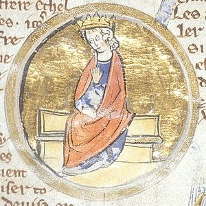 | Альфред Великий. Миниатюра из генеалогического манускрипта XIII века |