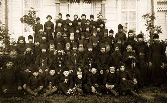 | Братия монастыря. Во втором ряду третий слева - о. Нил, четвертый слева - о. Матфей. Сентябрь 1902 г. |