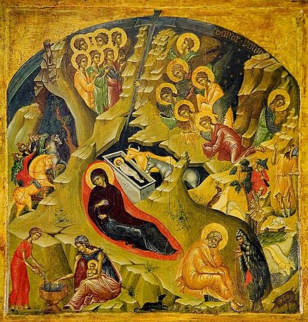 | Рождество Христово. Фреска. Монастырь Студеница. Сербия |