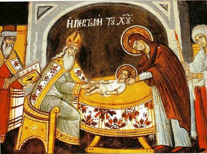 Смирился, дав блюсти Себя старцу, Тот, Кого на небе окружали сонмы ангелов. Смирился, дав пеленать и осязать Себя руками человеческими, Тот, Кто сидит на Престоле огненном и на Кого не смеют взирать херувимы и серафимы.
