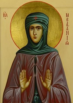 Валерия Мелания[3] родилась в 383 году. В 14 лет она должна была против своей воли стать женой близкого родственника Пиниана. Как только свадебная церемония закончилась, она предложила молодому супругу жить в воздержании. Пиниан в ответ предложил ей сперва родить двух детей, дабы обеспечить наследование, а уже затем вместе оставить мир. Первой у супругов родилась дочь, которую они сразу же посвятили Господу. Продолжая для видимости вести светскую жизнь, подобающую богатой аристократке, Мелания стала носить под одеждами из шелка грубую тунику из конского волоса и начала втайне от всех умерщвлять плоть. В 403 году во время преждевременных родов умер ее сын, сама же она избежала смерти, лишь взяв с мужа клятву не откладывать более принятого решения.