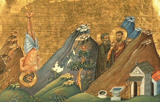 Святой Зосима был родом с Сицилии, вел аскетическую жизнь в пустыне, соседствуя с дикими зверями. Арестованный по приказу правителя Домициана, он исповедал Христа воистину воплощенным Богом. За это ему сожгли уши раскаленным железом и бросили в чан с кипящей водой. Но благодать Божия сохранила его невредимым в этих испытаниях. Когда его подвесили за ноги, один из львов, живший с подвижником в пустыне, внезапно возник посреди стадиона и исповедал человеческим голосом Божество Христа.