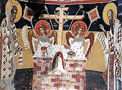 В заключение следует сказать, что можно найти много параллелей между писаниями святителя Игнатия Брянчанинова и святителя Феофана Затворника. Я имею в виду их писания о святой Евхаристии. Точно так же, как и святитель Игнатий, святитель Феофан пишет о глубокой взаимосвязи между Покаянием и Причащением. Оба святителя усматривают в покаянии основной подготовительный момент к принятию человеком Христа, также они говорят о покаянии как о первейшем средстве очищения себя от грехов, в которые мы по немощи своей впадаем после святого крещения. Также, как и святитель Игнатий, святитель Феофан пишет о «всепрощении таинства покаяния»[8], о том, что «без настоящего покаяния и исповеди и подвиги остаются бесплодными, и святое Причащение не будет во исцеление души и тела»[9]. Можно сказать, что подобная мысль свойственна всем вообще отцам, как древним, так и новым. Несомненно, что святители Игнатий и Феофан основывались и на Священном Писании, и на творениях ранних отцов Церкви. Особенно интересно было бы сравнить с произведениями русских святых творения некоторых отцов Церкви, например, святителей Иоанна Златоустого и Кирилла Иерусалимского, преподобного Николая Кавасилы. Так, преподобный Николай Кавасила в четвертом Слове жизни во Христе пишет о святом Приобщении (Евхаристии): «От трапезы (Евхаристии) принимаем мы Самого Воскресшего, и не дары Святого Духа, какие только можем мы получить, но Самого Благодетеля, самый храм, в коем находится полнота благодатных даров…»[10]. А вот слова из четвертого тайноводственного поучения святителя Кирилла Иерусалимского «О Теле и Крови Христовой»: «Почему со всякою уверенностью примем сие как Тело и Кровь Христову. Ибо во образе хлеба дается тебе Тело, а во образе вина дается тебе Кровь, дабы приобщився Тела и Крови Христа, соделался ты Ему стелесным и скровным. Ибо, таким образом, бываем и Христоносцами, когда Тело и Кровь Его сообщится нашим членам. Так, по словам блаженного Петра, бываем Божественного естества причастницы» (2 Пет., 1, 4)[11].