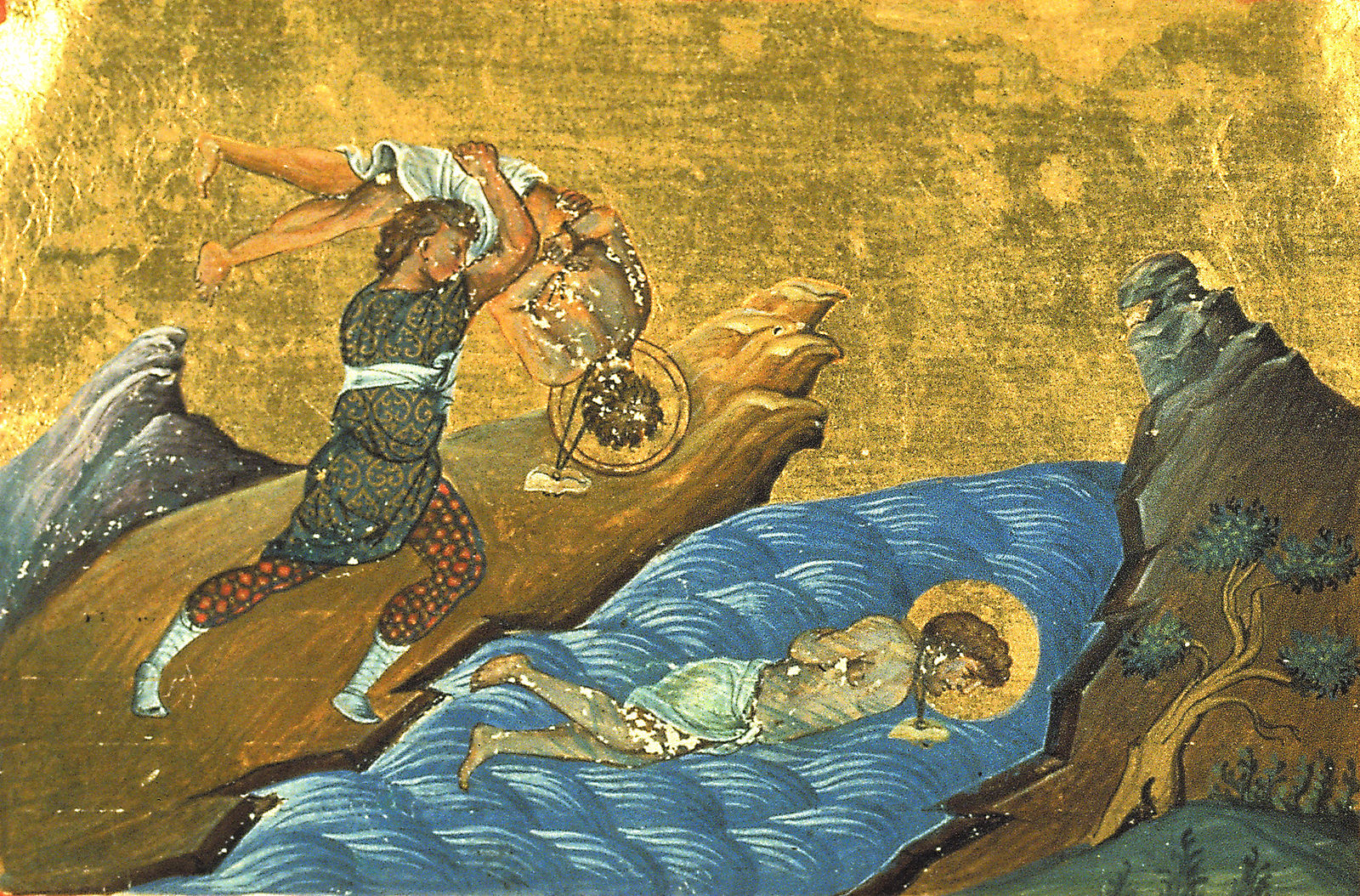 Видя эти чудеса, тюремщик Стратоник обратился в истинную веру и стал другом святого Ермила. Но он еще не решался открыто исповедать веру и пойти на мученичество. На следующий день святого Ермила вновь вывели из темницы и стали подвергать ужасным пыткам. Святой Стратоник заплакал, видя, как его друга растянули на земле и непрерывно бичуют розгами с железными остриями на концах и как орлиными когтями ему распарывают живот до самых внутренностей. Переживания Стратоника вызвали подозрения у солдат, которые стали его допрашивать. Тогда он почувствовал, что пришло его время.