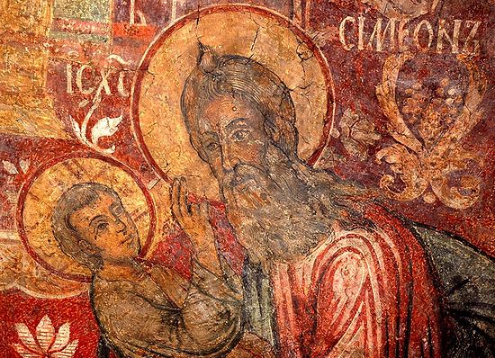 | Сретение Господне. Фрагмент фрески собора Сретения Владимирской иконы Божией Матери. Сретенский монастырь |