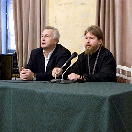 | Президент Международного фонда славянской письменности и культуры Александр Крутов и наместник Сретенского монастыря архимандрит Тихон (Шевкунов) |