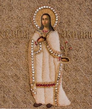 Святая Акилина жила в эпоху Великого гонения (303–305). Она была дочерью Евтолмия, знатного человека из Библа Финикийского. Когда ей исполнилось пять лет, ее крестил епископ Евфалий. С десятилетнего возраста Акилина с такой ревностью объясняла своим сверстницам, как отказаться от идолопоклонства и обратиться ко Христу, что была выдана неким Никодимом проконсулу Волусиану. Последнему император Диоклетиан поручил исполнять в этой области Римской империи первые указы о гонениях на христиан.