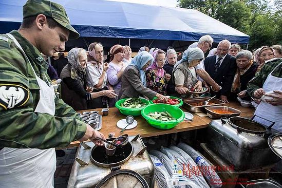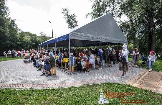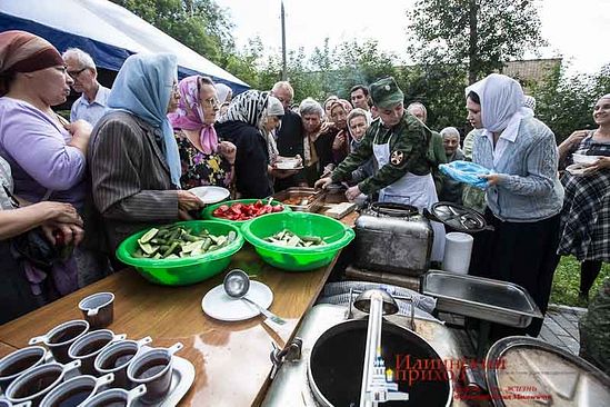 ...После литургии Илиинский праздник перетек на территорию исторической резиденции Московских митрополитов. Здесь для прихожан и гостей была устроена незатейливая трапеза с полевой кухней и хоровой концерт. Места под шатром хватило не всем, как и лавок и стульев. А в какой-то момент закончилась и еда. К изумлению приходского совета, в пятничный день в Черкизово съехалось намного больше людей, чем в такой же будний Ильин день 2012 года. Были и те, у кого испортилось настроение, но радостным осталось духовенство: и необычный архиерей, раздающий белые розы прихожанам, и динамичный молодой настоятель – любимец местных бабушек и тетушек, и разновозрастные и непохожие друг на друга черкизовские клирики, и именитое высокопоставленное патриархийное руководство – коллеги настоятеля.