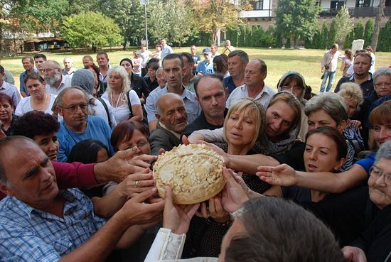 благословио славски колач и преломио га са игуманијом