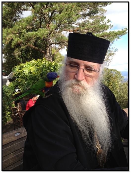 Мне удалось побывать в Мельбурне, где я виделся с духовенством и несколькими старыми друзьями, и они отвезли меня в горы Тамборин. Были очень красивые виды, что-то вроде тропического леса, огромные эвкалипты, экзотические птицы. В целом, там очень мало деревьев и птиц, которые можно найти и у нас в Северной Америке. Мне также показали Blue Mountains в нескольких часах езды от Сиднея. Похоже на нашGrand Canyon, заросший австралийскими деревьями и другой растительностью. Очень красиво. Я также ездил в монастыри, расположенные загородом, как они говорят "in the bush". Расположены они в очень отдаленных местах, пользуются солнечными батареями и генераторами для производства электроэнергии, собирают дождевую и речную воду для питья и поливки огородов. По дороге в монастыри нам встретилось много кенгуру и уаллаби.