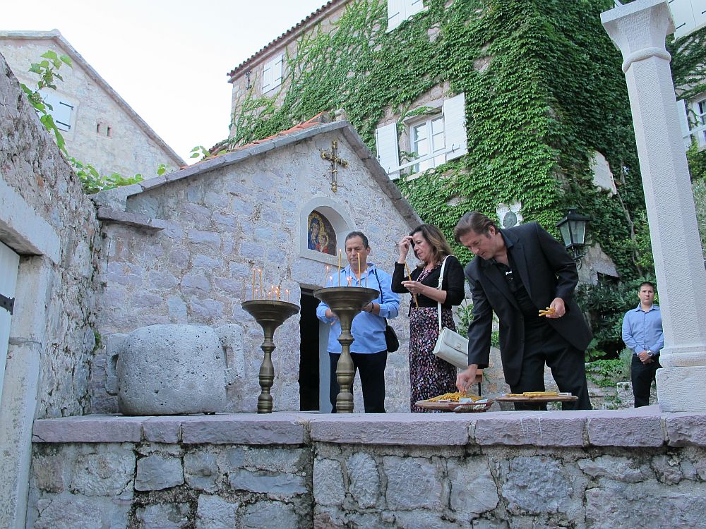 Вход на остров был закрыт для окрестных жителей, а территория объявлена частной. Когда однажды летом 2011 года священник Синиша Смилич и несколько прихожан попытались пройти к руинам храма, менеджеры гостиниц вызвали полицию. Той же ночью священника арестовали и депортировали из страны: он гражданин Республики Сербской, а в Черногории живет и служит по годовым визам. Поскольку власти были склонны оказывать больше поддержки расколу — малочисленной и никем, кроме других раскольников на Украине, не признанной «Черногорской автокефальной церкви», — каждый священник канонической Сербской Православной Церкви должен был получать регистрацию для служения. Такой регистрации отца Синишу лишили. Год он провел в Сербии, о чем не жалеет: что рассуждать о депортации, если Господь счел эту историю исповедничеством? Награда оказалась велика: после возвращения из депортации в семье Смиличей родилась дочь Ангелина, притом что за шесть лет до этого им сказали, что они бесплодны.