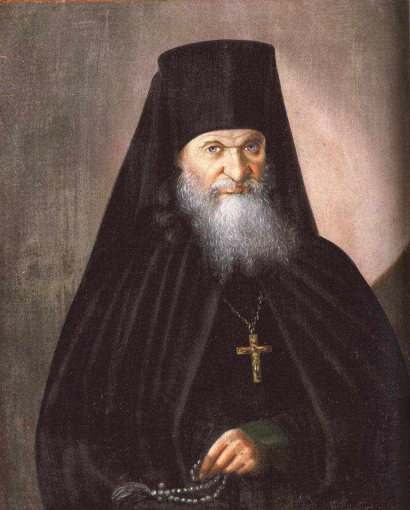 «Среднего роста, весь седой, одет летом в мухояровую поношенную ряску и башмаки, зимой – в весьма поношенную, крытую темно-зеленым драдедамом шубку, с костылем в одной и четками в другой руке.