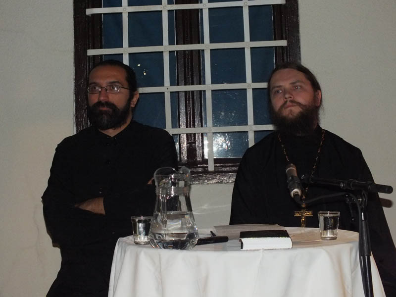 Након представљања књиге и њеног живота од објављивања до сада, присутни су драгом госту из Русије постављали питања о личностима описаним у књизи, самом аутору, животу у Сретењском манастиру и Псково-печерској лаври, као и руско- српским односима.