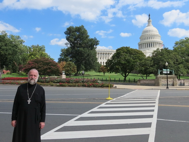 С отцом Виктором мы проделали путь по центру Вашингтона на машине. И тут же прочувствовали и вынуждены были подчиниться биению общественно-политического пульса американской столицы. Прямо перед нами из одного официального здания по направлению к другому по проезжей части дороги следовала колонна демонстрантов-инвалидов: калеки, слепые, хромые, на колясках, в сопровождении людей и собак, они неспешно, с достоинством двигались к законодательному собранию США. А назавтра страну ожидал кризис власти, когда не договорившиеся между собой демократы и республиканцы «отправили» всех госслужащих в вынужденный отпуск. И бесплатные музеи вмиг закрылись, оставив в разочаровании тысячи посетителей столицы.