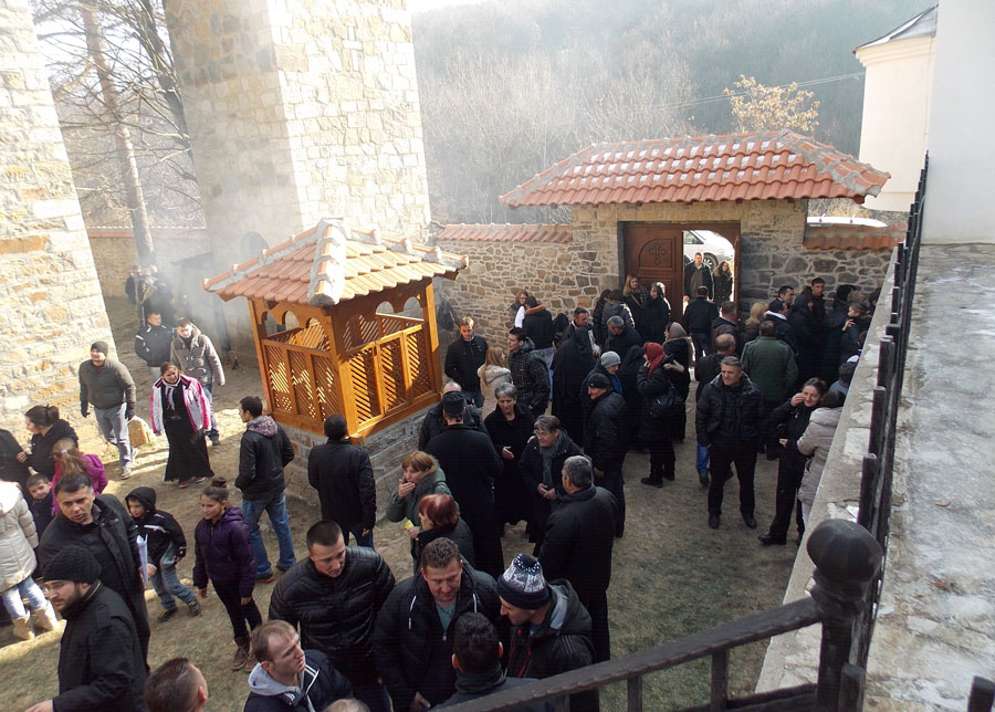 По окончању литургије у манастирској трпезарији је припремљена трпеза љубави за све присутне, а пред кивотом са моштима светог Јоаникија цео дан су се смењивали верници. Међу многима који су дошли у манастир је и дечак из Косовске Митровице Душан Поповић који цело време није испуштао из руку српску тробојку.