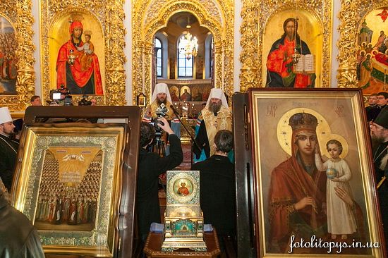 Пре богослужења у Успенски храм је из Ваведењског манастира у Кијеву у литији пренета чудотворна икона Пресвете Богородице «Погледај на смирење».