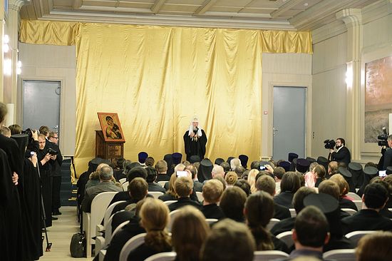 Вы помещены в особые условия — у вас замечательная семинария в центре Москвы. Дай Бог, чтобы все то, что вас окружает в этом центре, все соблазны большого города не разрушили вашего целеполагания, не подорвали ваших сил, но чтобы вы использовали то время, которое Бог предоставил вам, для того чтобы стать сильными, свободными, преданными Богу людьми.