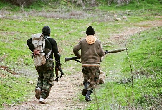 Ghaith Omran/AFP/Getty Images - Боевики готовятся к бою к северу от Хамы.