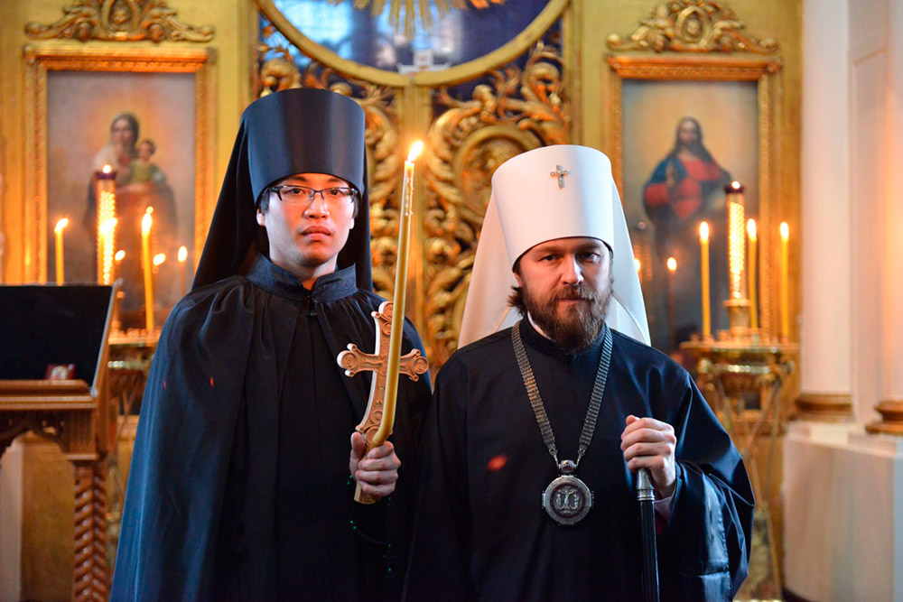 Митрополит Волоколамский Иларион и отец Николай (Оно) после пострига Митрополит Волоколамский Иларион и отец Николай (Оно) после пострига