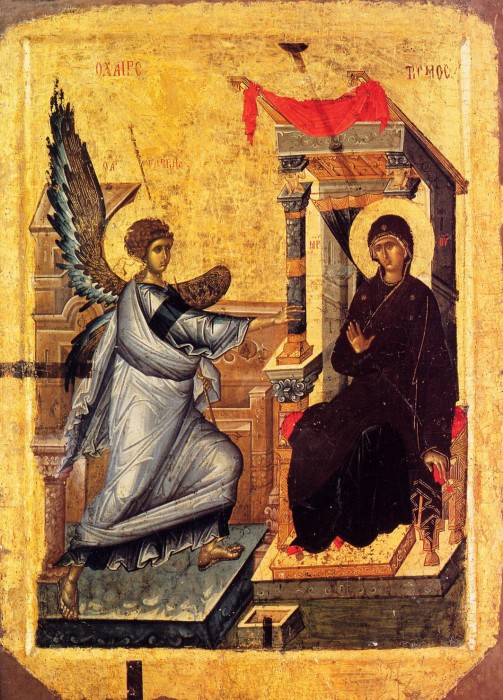 И вот, «в месяц же шестой» ношения младенца Елисаветой «послан бысть Ангел Гавриил от Бога...» И вошел он туда, где жила Богородица, и сказал Ей: «Радуйся, Благодатная, Господь с Тобою!»