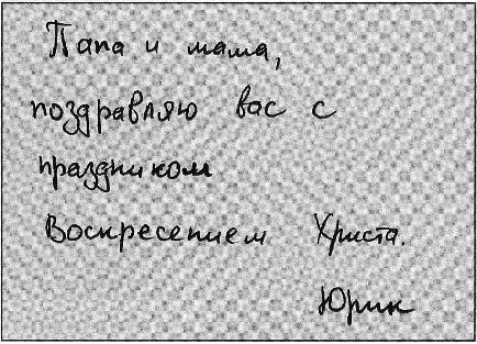 Последний привет от сына родители получили уже после его похорон: из почтового ящика выпала пасхальная открытка, отправленная Георгием в один из его последних земных дней. Благая весть о смертию смерть поправшем Господе нашем – его последняя весть родителям, как бы в подтверждение слов из проповеди отца Наума, бережно хранимой Георгием: «Тело тленно и маловременно, а душа божественна и безсмертна и… соединена с телом для испытания и восхождения к Богоподобию», к Жизни вечной, Любви неизреченной.
