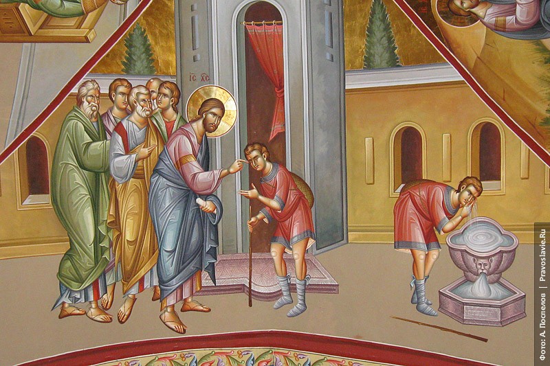 История слепорожденного — это история чуда, веры, неверия и суда. Мы видим слепого, и ученики спрашивают: за что ему это? Господь отвечает: не за что, а для чего. Люди полагают, что несчастья всегда посылаются в наказание от Бога; такой-то человек прогневал Бога — и вот, Бог сделал его слепым. Но Господь говорит: нет, это не так, это не для того, чтобы на данном человеке явился гнев Божий, но для того, чтобы на нем явилось спасение.