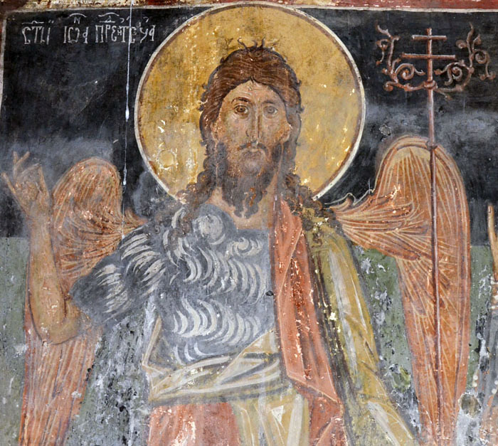 Тај Анђео у телу јавио се испред кога у овоме свету? Јавио се испред Бога. Требао је Бог да сиђе у овај свет, а ко да му прокрчи пут, ко да пропути пут Богу Који се јавља на земљи, земљи која се сва претворила у пустињу греха и смрти? Кога да пошаље Господ испред Њега, испред Себе Сама? Њега - великог Испосника, непрестаног Молитвеника, Пустињака још од колевке. Како овај свет, како грех света никако не подноси Бога и Правде Његове у овоме свету, од малена, ето, и њега гоне. Мајка бежи од Ирода са њим у пустињу и умире, и дете остаје мало, одојче такорећи. Анђели га чувају, Анђели га одхрањују.