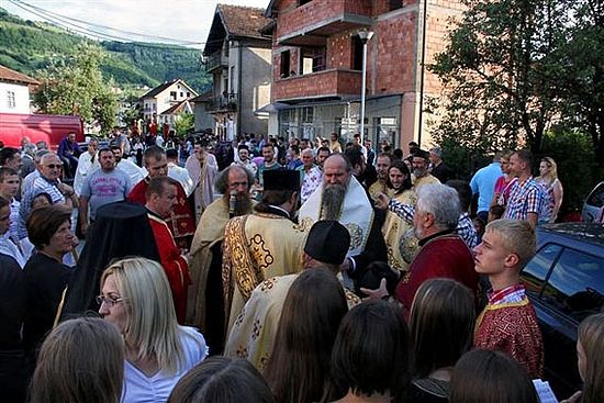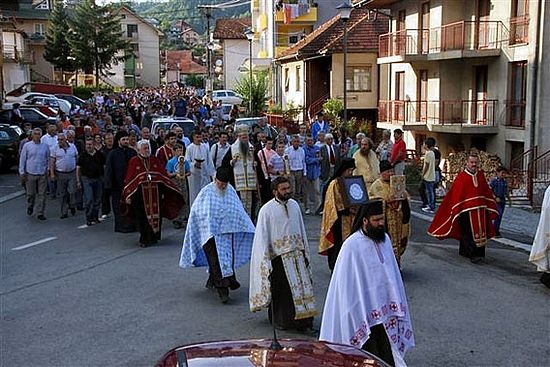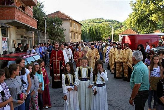 "Свједочимо такође, доласком овом светом храму и учешћем на свечаности да је истинита свака ријеч Божја. И она коју је Господ Исус Христос рекао својим устима и она апостолска ријеч, којој је Господ дао и силу истине, и своју свјетлост, и дејство своје ријечи. Та ријеч Божја прожима сву васељену, све вјекове, долази до свачијег вјерујућег срца, до онога ко призива име Божје, те освјетљава његов ум, његово срце и његову душу. И сабира нас да заједно прославимо име Божје, Господа и Спаситеља нашег Исуса Христа, и заједнички се његовом часном крсту поклонимо и његово васкрсење прославимо. То је вјера светих Апостола, непосредних ученика Христових. То је она вјера која може да препороди људско срце и биће, да га освети, освешта и спасе, а исто тако да препороди цио васиони свијет и све народе. И она је намијењена свим народима земаљским, јер је вјера спасоносна и света, која не пита ко је ко, него су сви домаћи и Божји, и свако има могућност да постане син Божји, само ако искрено вјерује и Њега, и у његову Свету Цркву. Велики је и радостан овај празник нарочито што послије свете службе вршимо и овај свештени ход народа, дјеце и омладине. А то свједочи да се нарочита милост Божја излива на дјецу и на породице и мајке које своју дјецу воде да их учине учесницима ове Свете литије. Све оне који су дошли искрено и са љубављу, да се укључе у ову свенародну свечаност, Бог ће благословити и помиловати, и радост овог празника ући ће у сваки дом и у сваку душу. Јер овакви празници имају такву благодат да се велика Божја милост излива на цио свијет. И нико од вас не би смио да пропусти прилику, да узме учешћа у овој свечаности, у светим службама уочи и на дан самог празника."