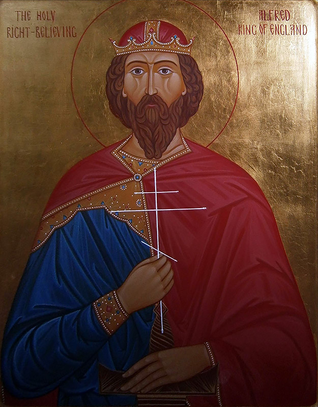 Именно Альфред основал английский флот, строил крепости, сражался и победил датских захватчиков, убивших его друга, короля Восточной Англии, мученика Эдмунда. Когда же Альфред победил датчан, он не стал кроваво мстить им, а крестил их, приведя от варварства Одина к учению «Белого Христа». Он отвоевал Англию не только физически, но и духовно. Альфред Великий переводил отцов Церкви, христианизировал языческую римскую философию и учил десяти Заповедям в своих законах: «Закон Англии есть закон Божий, как он записан в Библии; и король, и суды подвластны ему и не могут его изменять». Он начал восстанавливать старую английскую цивилизацию, чьи школы при кафедральных соборах с древних пор преподавали латынь и греческий язык, музыку и астрономию. Альфред отправлял миссии в Европу, чтобы вернуть ее из язычества. Этот великий правитель был поистине велик, потому что в нем горело духовное видение Англии, обновленной во Христе, восстановленной в благочестии и учености прежних лет. Дети Альфреда, их дети и дети их детей – Эдуард Старший, Этельстан, Эдмунд I, святой Эдгар Мирный – завершили его труды, приведшие к великому духовному и культурному процветанию и подъему Англии в X веке, кульминацией которого стало судьбоносное мученичество и самопожертвование святого Эдуарда-Мученика в 978 году. Альфреда называли «Альфред провозвестник правды», «Альфред законодатель», «английский пастырь», «утешитель Англии», «любимец Англии», «отец английской духовной литературы».