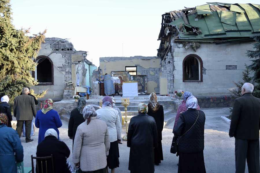 21 сентября, на праздник Рождества Пресвятой Богородицы, община храма в честь святого праведного Иоанна Кронштадтского собралась на первую после августовского обстрела Божественную литургию. Служба прошла под открытым небом — рядом с руинами церкви, которая не подлежит восстановлению.
