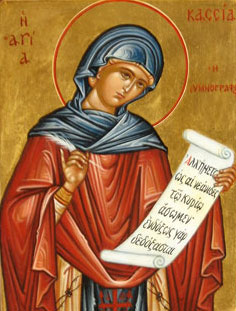 Её духовником с отрочества был преподобный Феодор Студит. Вот какие наставления отправлял он тринадцатилетней Кассии: «Всё, что твоя добродетельность опять сказала нам, мудро и разумно. Поэтому мы с полным правом удивились и возблагодарили Господа, встретив такой ум в юной девице. Правда, это не похоже на бывших прежде, ибо мы, нынешние, и мужчины, и женщины, бесконечно много уступаем им и в мудрости, и в образованности. Во всяком случае, в настоящее время ты сильно выделяешься. Слово — твоё украшение больше, чем всякое тленное благолепие».