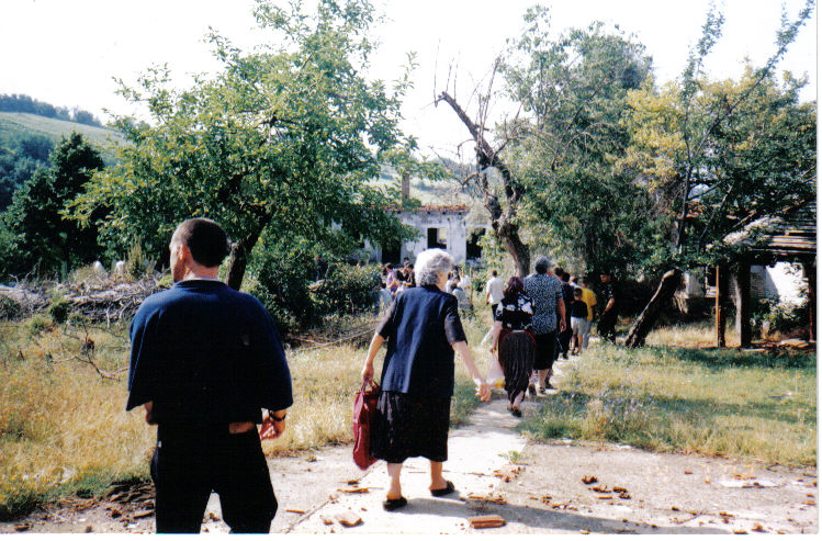 Из једног малог камиона извадили су пар кревета на расклапање, један дрвени сто, пар столица и нешто хране. Икона са које су повратнике посматрали Свети Врачи Козма и Дамјан постављена је на зид једне од просторија срушеног конака, покривеног само најлонима. У тој просторији су монаси смештени до обнове једног дела конака и стварања услова за њихов опстанак и молитву. Манастир су обезбеђивали војници КФОРа, а монаси (Петар, Серафим, Јован, Козма, Мартинијан,) свако у своје време, уз одређену дозу страха и молитву дочекивали су вернике који су долазили, на почетку ретко, а после готово свакодневно.