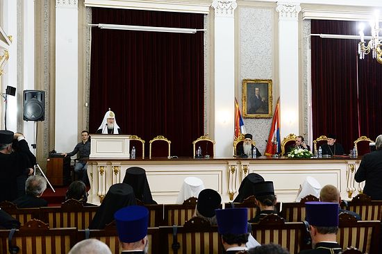14 ноября 2014 года Святейший Патриарх Московский и всея Руси Кирилл посетил Белградский университет, где прошла церемония вручения Его Святейшеству диплома доктора honoris causa. Предстоятель Русской Церкви обратился к собравшимся со словом.