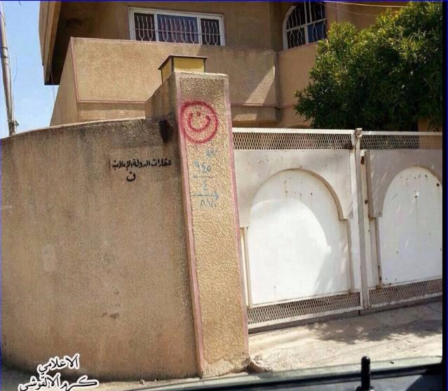 Inside a red circle is the Arabic letter “n”, which means “the Nazarenes”, or Christians. In this way ISIS marks Christian houses in Mosul (photo by AINA).