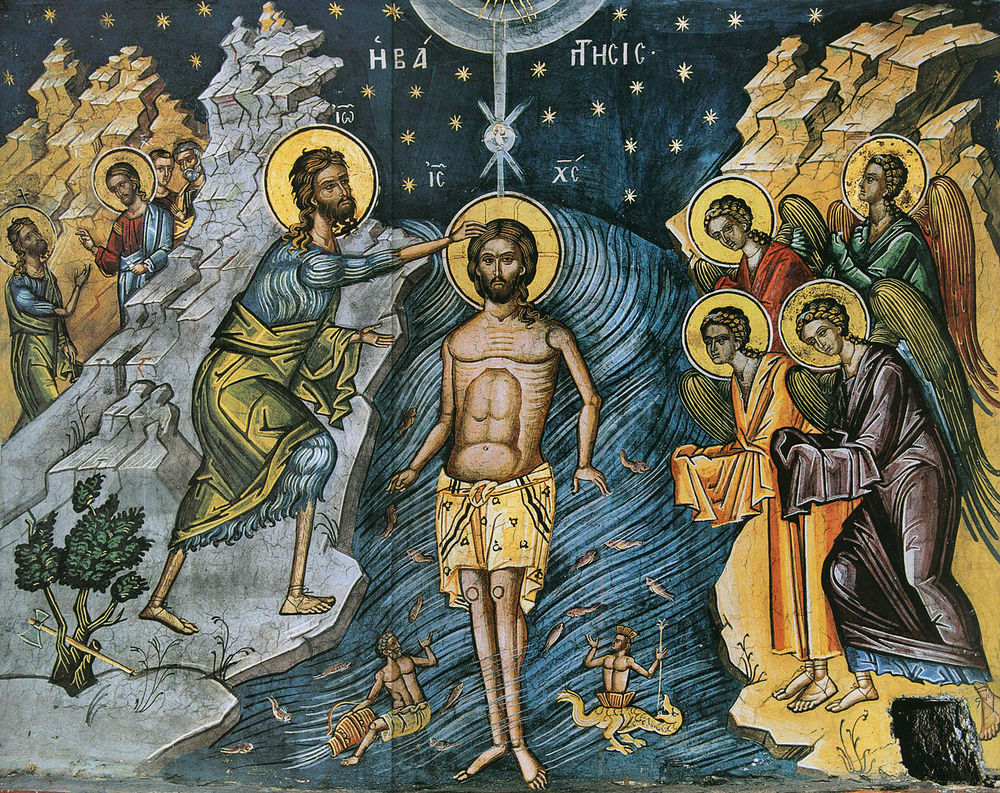 «Днесь вод освящается естество, и разделяется Иордан и своих вод возвращает (удерживает, замедляет) струи, Владыку зря крещаема».