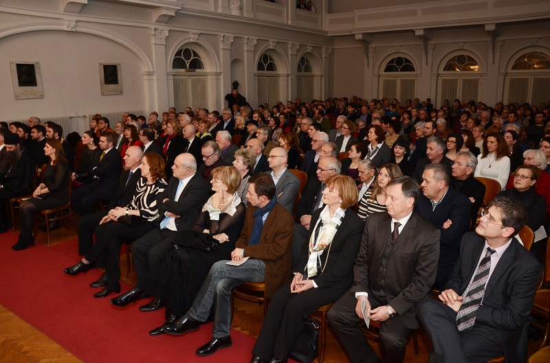 Поздравну ријеч упутио је предсједник СКД Просвјета г. Чедомир Вишњић. Потом се присутнима обратио професор Милош Окука, овогодишњи добитник награде Сава Мркаљ за допринос култури Срба у Хрватској, чије је подручје научног интересовања дијалектологија, историја језика, савремени стандард језика и књижевно-језичка политика. У свом обраћању професор Окука је истакао да је језичко и књижевно насљеђе српског народа у Хрватској дуго било занемарено и да се нада да ће истраживања на овом пољу бити настављена. О Светом Сави који нас у Христу већ вијековима сабира, у својој бесједи говорио је митрополит Порфирије: