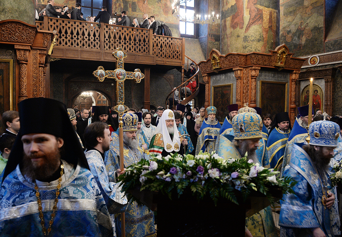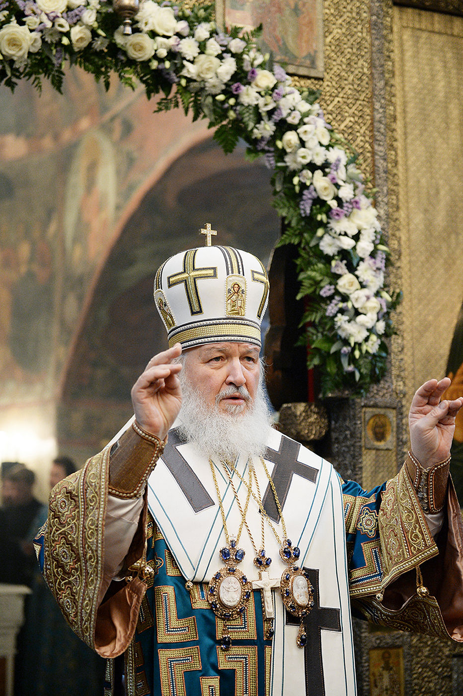 После сугубой ектении Предстоятель Русской Церкви вознес молитву о мире на Украине.