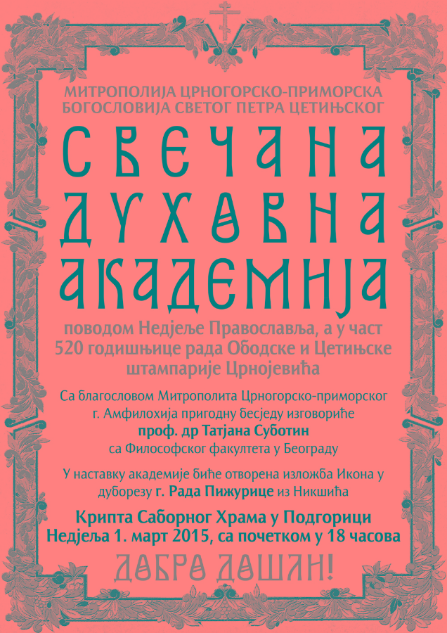 Најава: Духовна академија у Подгорици поводом Недјеље православља