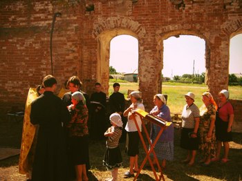 На Литургии собралось почти полсотни людей. И эта совместная молитва словно вдохнула жизнь в разрушенный храм. Один из местных фермеров принял решение восстанавливать церковь. Сегодня его стараниями на здании установлены несущие конструкции будущей крыши, каркасы куполов и колокольни. Работы еще предстоит очень много, но прихожане уверены, что с Божьей помощью, которая приходит через неравнодушных людей, храм будет достроен.