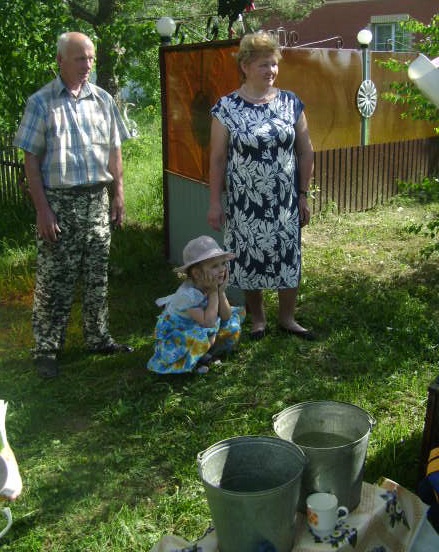 Далее на пути шикарного вида деревня Подберёзы. Преимущественно коттеджи. Жители выходят встречать, а некоторые приготовили воды в ведрах. Паломники кидаются к воде – пьют, обливаются. Благодарят.