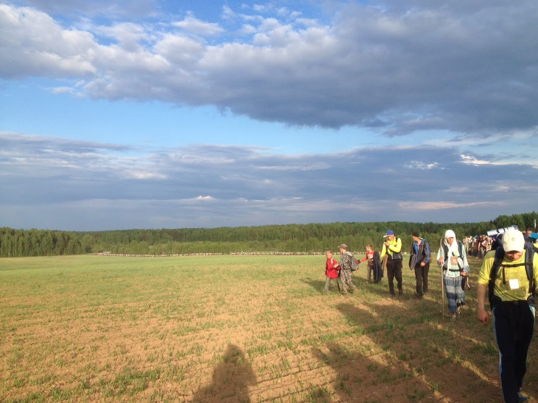 Я вдруг начинаю думать о солдатах Великой Отечественной войны, о пехоте. Мы-то идем – знаем куда, знаем, что через несколько дней сядем в поезда и разъедемся по домам, а они? Шли, и неизвестно, когда всё кончится, и неизвестно, будешь ли живым. Как они терпели, где брали силы, как спасались, как укрепляли дух свой? Многое начинаешь понимать, а точнее – чувствовать нутром, когда вот так несколько дней с рюкзаком идешь под палящим солнцем, под дождем, по грязи. Еще бурлаков на Волге вспоминала.