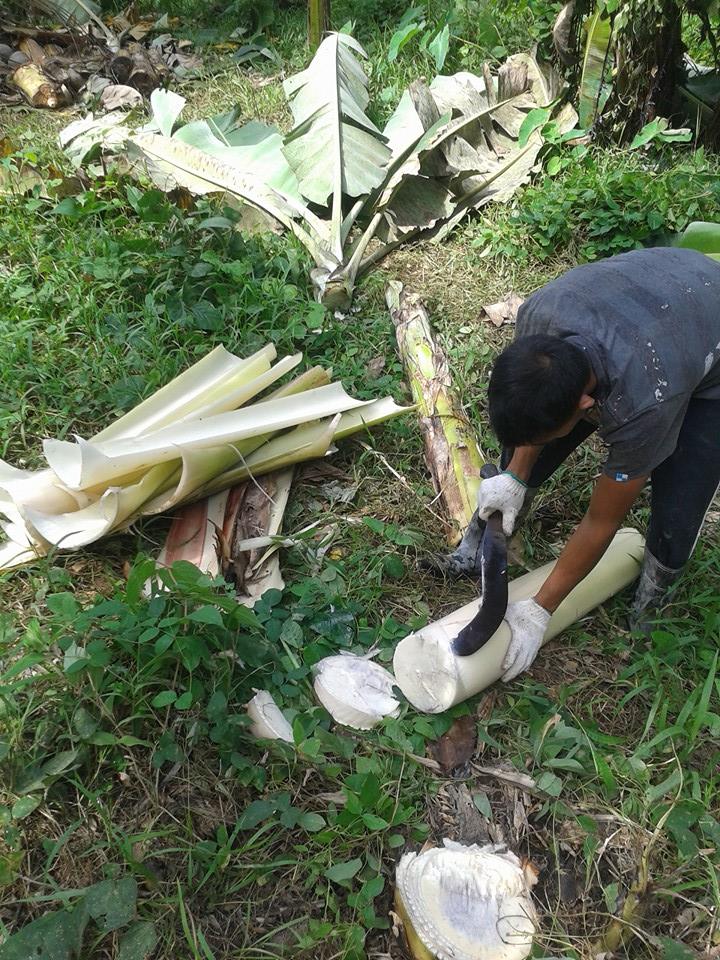 Из банановой пальмы получается довольно вкусный суп. Его-то мы и ели на обед, разумеется с рисом