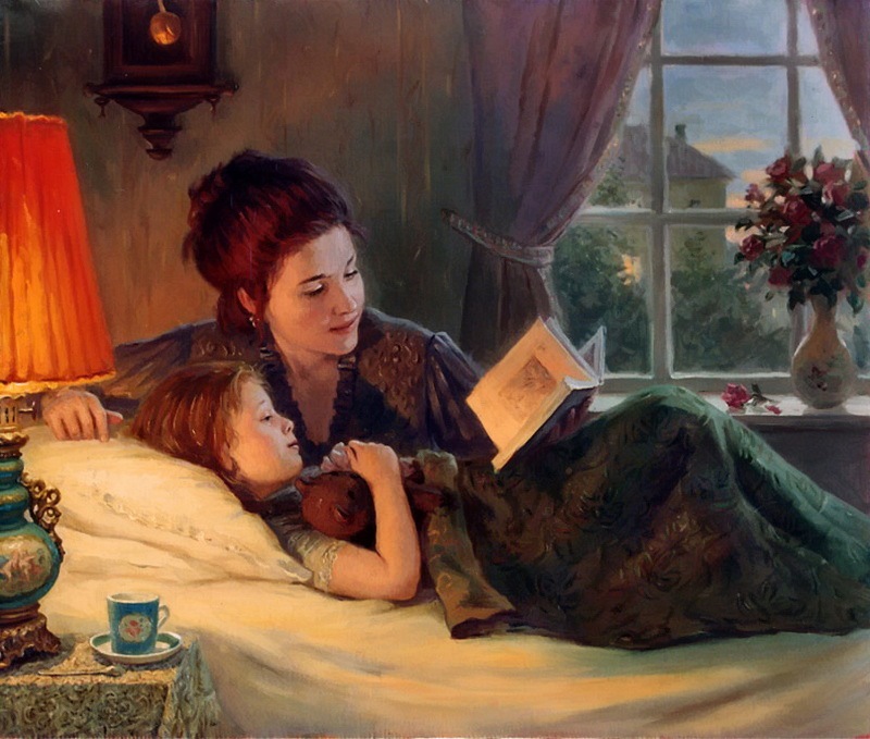 Дети хотят, чтобы мама оставалась с ними, а не уходила со своим «Спите, дети». Дети готовы слушать. И они будут слушать практически что угодно. А значит, это время – возможность прочитать детям практически что угодно. Мы читаем самую разную литературу. Чередуем условно «взрослую» и совсем «детскую». Дети, привыкшие к компьютерам и экшену в фильмах, с трудом воспринимают тягомотные поэмы, описания природы и тому подобное. А вот когда мама читает на ночь – под угрозой ухода и выключения света – любые поэмы оказываются интересными. И если поначалу дети просто терпят, особенно какое-нибудь длинное вступление, то впоследствии втягиваются, начинают следить за сюжетом, переживают прочитанное, просят почитать еще и еще. Постепенно дети начинают ценить и любить хорошую литературу. И при этом воспринимают книгу как один из интересных способов проведения времени, скоро начинают читать сами – для них это не насилие учителей над школьниками, не анахронизм, а просто неотъемлемая часть жизни.