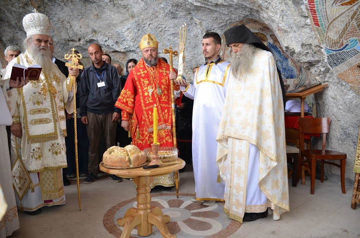 Поводом храмовне славе цркве Часног Крста у Горњем острошком манастиру, свету архијерејску Литургију служили су Архиепископ цетињски и Митрополит црногорско-приморски и игуман острошке обитељи г. Амфилохије и Митрополит кемеровски и прокопијевски г. Аристарх уз саслужење свештенства и свештеномонаштва Српске и Руске Православне Цркве.