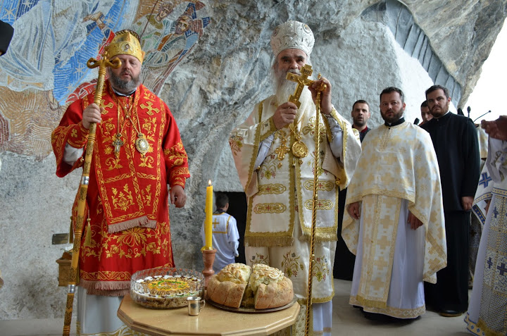 Митрополити Амфилохије и Аристарх са саслужитељима су након причешћивања вјерника благословили и пререзали славски колач, а потом се сабраним вјерницима и свештенству надахнутом архипастирском бесједом обратио мтрополит Амфилохије.
