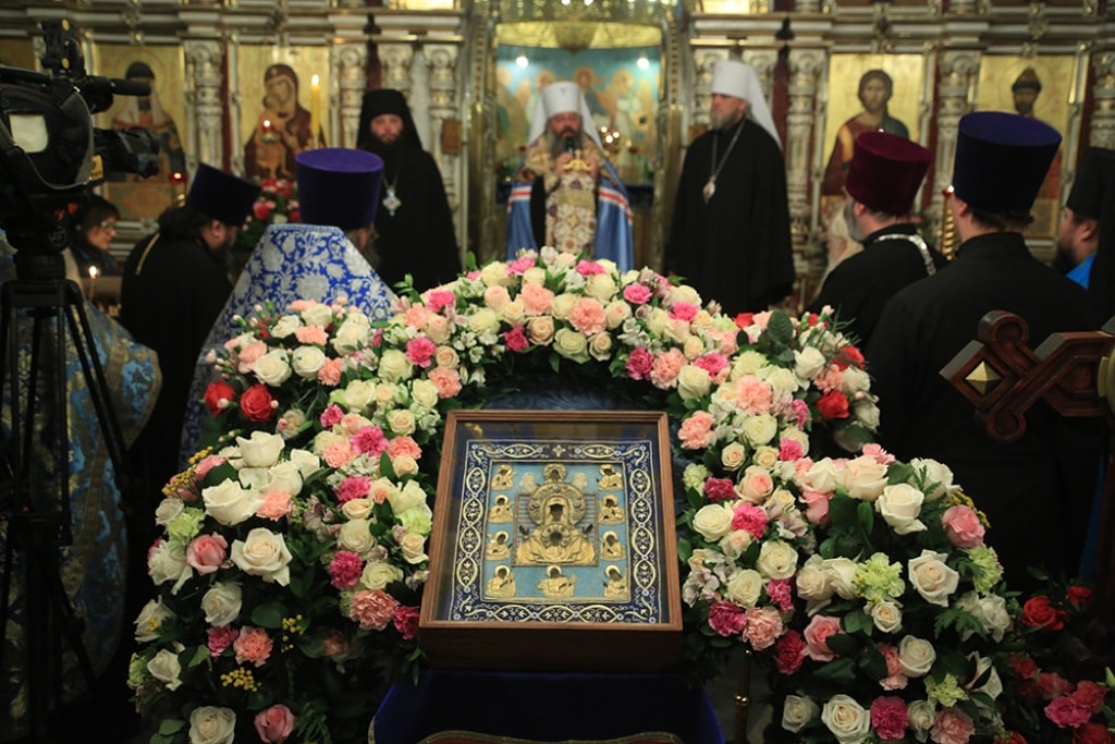 Чудотворный образ был доставлен в Храм-на-Крови во имя Всех святых Церкви Русской, возведенный на месте убиения Царственных страстотерпцев. Перед установленной на аналое иконой было совершено торжественное богослужение.