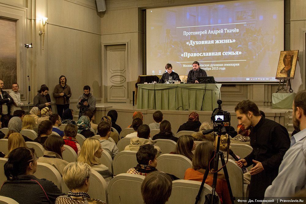 21 октября 2015 года в стенах Сретенской духовной семинарии протоиерей Андрей Ткачев отвечал на вопросы собравшихся о духовной жизни и православной семье.