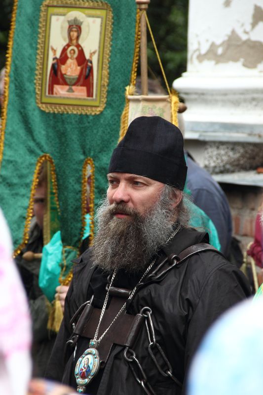 Епископ Душанбинский и Таджикистанский Питирим в веригах прп. Иринарха. Иринарховский крестный ход, 2013 г.